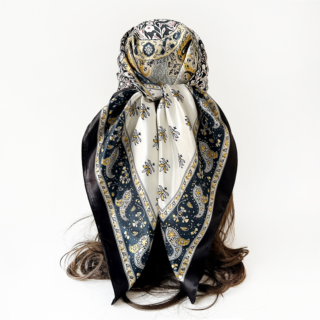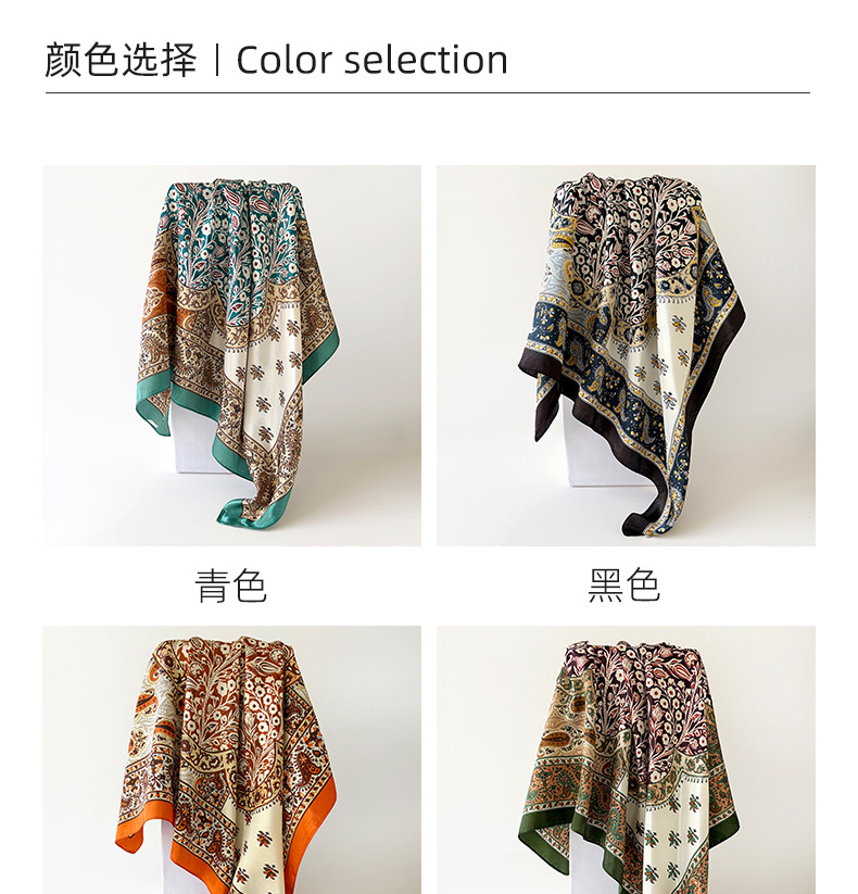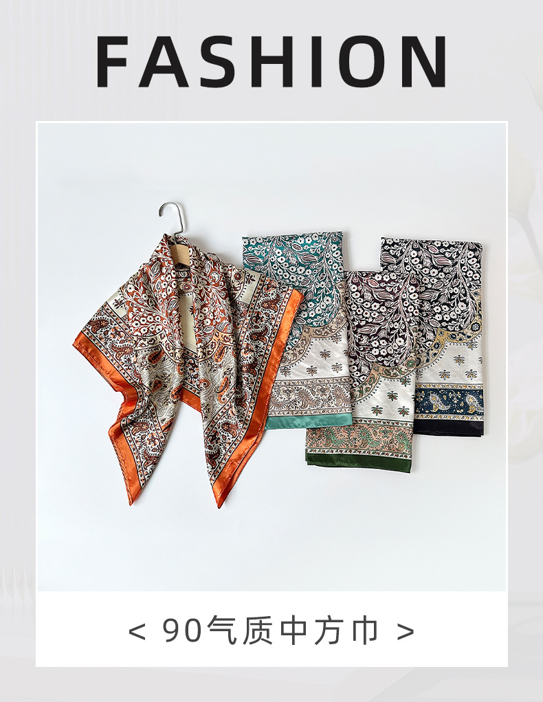 90Cm Satin Silk Scarf Turban Wholesale Classic Cashew Print Silk Scarf For Women Cross-Border Large Square Scarf Shawl